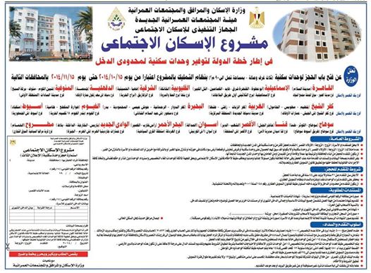 فى اطار خطة الدولة لتوفير وحدات سكنية لمحدودى الدخل