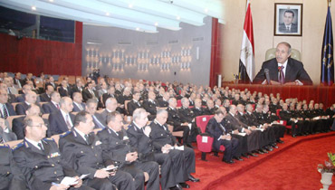 وأضاف الوزير قائلاً : " أن أجهزة الشرطة ستتصدى لأى محاولة للخروج عن الشرعية وتجاوز ضوابط الدعاية الانتخابية من أى فئة تحاول النيل من مقومات الاستقرار خلال هذه الفترة بافتعال مواقف تصادمية ".