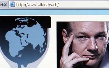 صورة توضح موقع ويكيليكس الجديد على الانترنت مع صورة مؤسسه جوليان أسانج