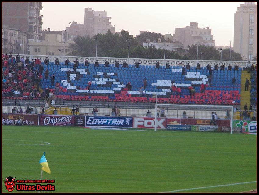 وكانت الدخله عباره عن كتابة جملة " الأهلي فوق الجميع " الشهيره علي كامل المدرجات المخصصه لجمهور الأهلي بالأمس بملعب الأسكندرية .