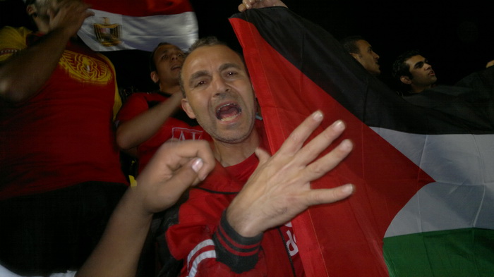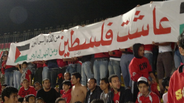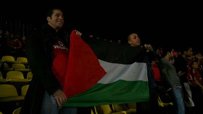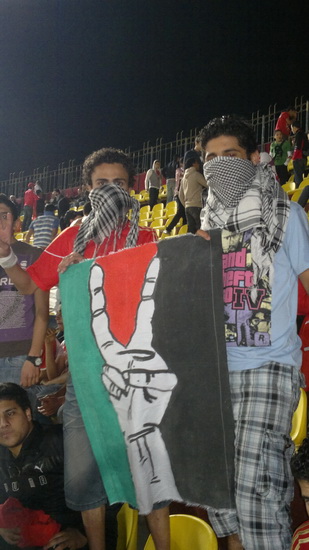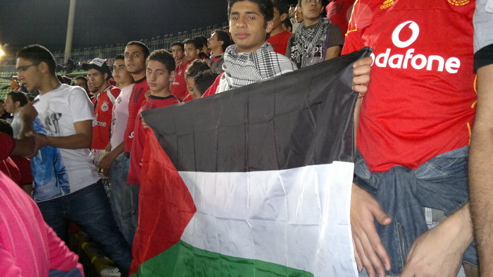 وكانت وسائل الإعلام الصهيونية قد أبدت تخوفها من إقبال الجماهير المصرية علي حمل اللافتات المؤازرة للقضية الفلسطينية والمنددة بالعدوان الغاشم علي غزة ، والهتافات المدوية التي تضج بها المدرجات المصرية طلباً لنيل شرف الشهادة في تحرير فلسطين والمسجد الأقصي.