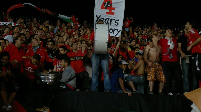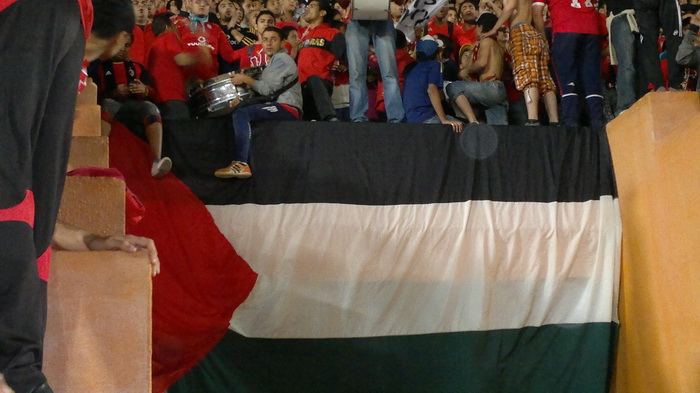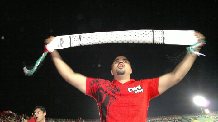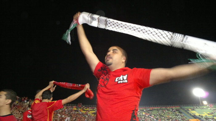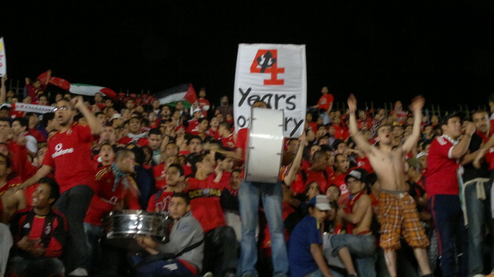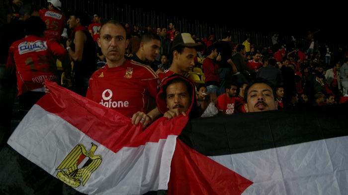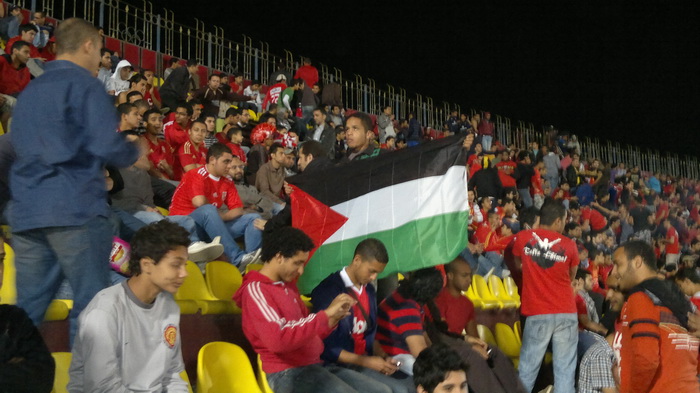 وقد رفرفت أعلام فلسطين ومصر وأعلام الناديالأهلي في المدرجات وسط هتافات للمارد الأحمر ،وتجدر الإشارة بأن رابطه محبي وعشاقالنادي الأهلي المصري بفلسطين تحرص علي التواصل مع مسئولي النادي وقادة الجماهير من أجل أن تخرج المبارياتالقادمة للقلعة الحمراء في الدوري العام وأفريقيا بالشكل الذي يليق بالنادي وتاريخهالعريق والحفاظ على المظهر الحضاري والتشجيع المثالي الراقي.