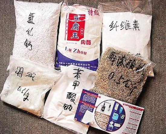 ويتكون البيض المزيف من بودرة من مادة الميلامين وكلوريد الكالسيوم الذى يكون صفار البيض.
